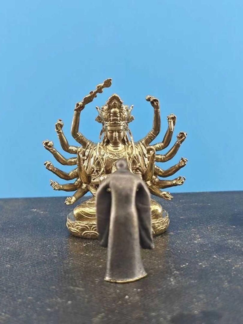 - 美術品・アンティーク・コレクション > 工芸品 > 仏灯 銅器 文房具 茶道具 重厚 極細工 工芸品 美術品 置物 仏事 銅 細工 仏教美術 玄奘参詣準提菩薩仏像 禅意茶道 置物 装飾品