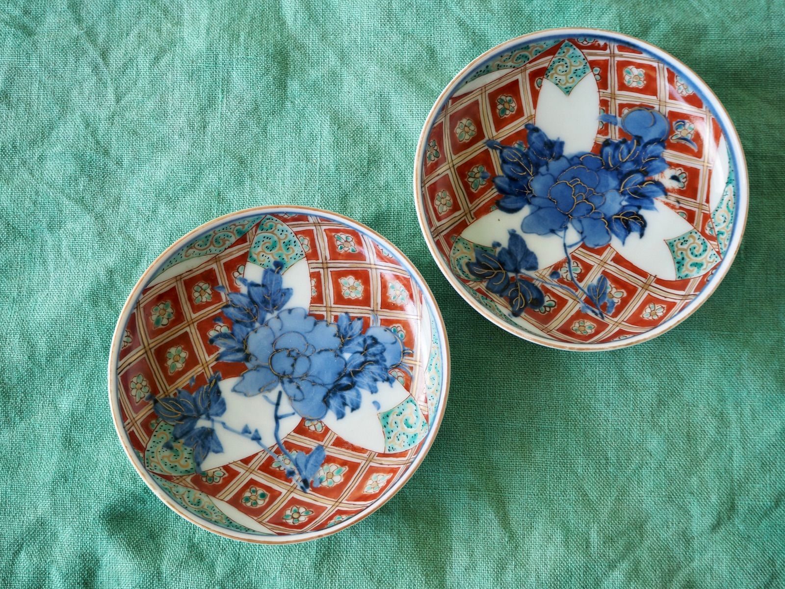 - 美術品・アンティーク・コレクション > 工芸品 > 大皿 2枚 骨董品 大聖寺伊万里 古伊万里 伊万里 色絵 金彩 向付 5客 大聖寺伊万里 小皿 2客セット|色絵金彩 染錦 花格子文 和食器