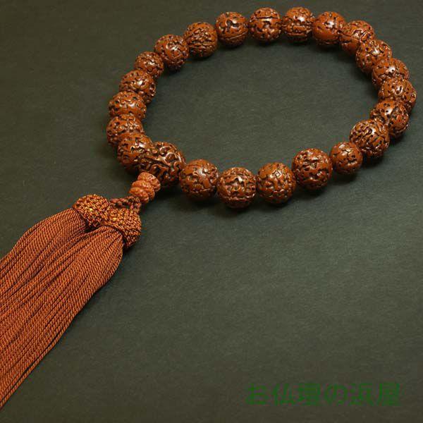 - 美術品・アンティーク・コレクション > 彫刻・オブジェ > 時代提げ物 木彫 干支 根付 トンボ玉 数珠 念珠 装飾品 N 8780 数珠(念珠) 金剛菩提樹・共仕立 20珠 人絹頭付房 男性用1蓮